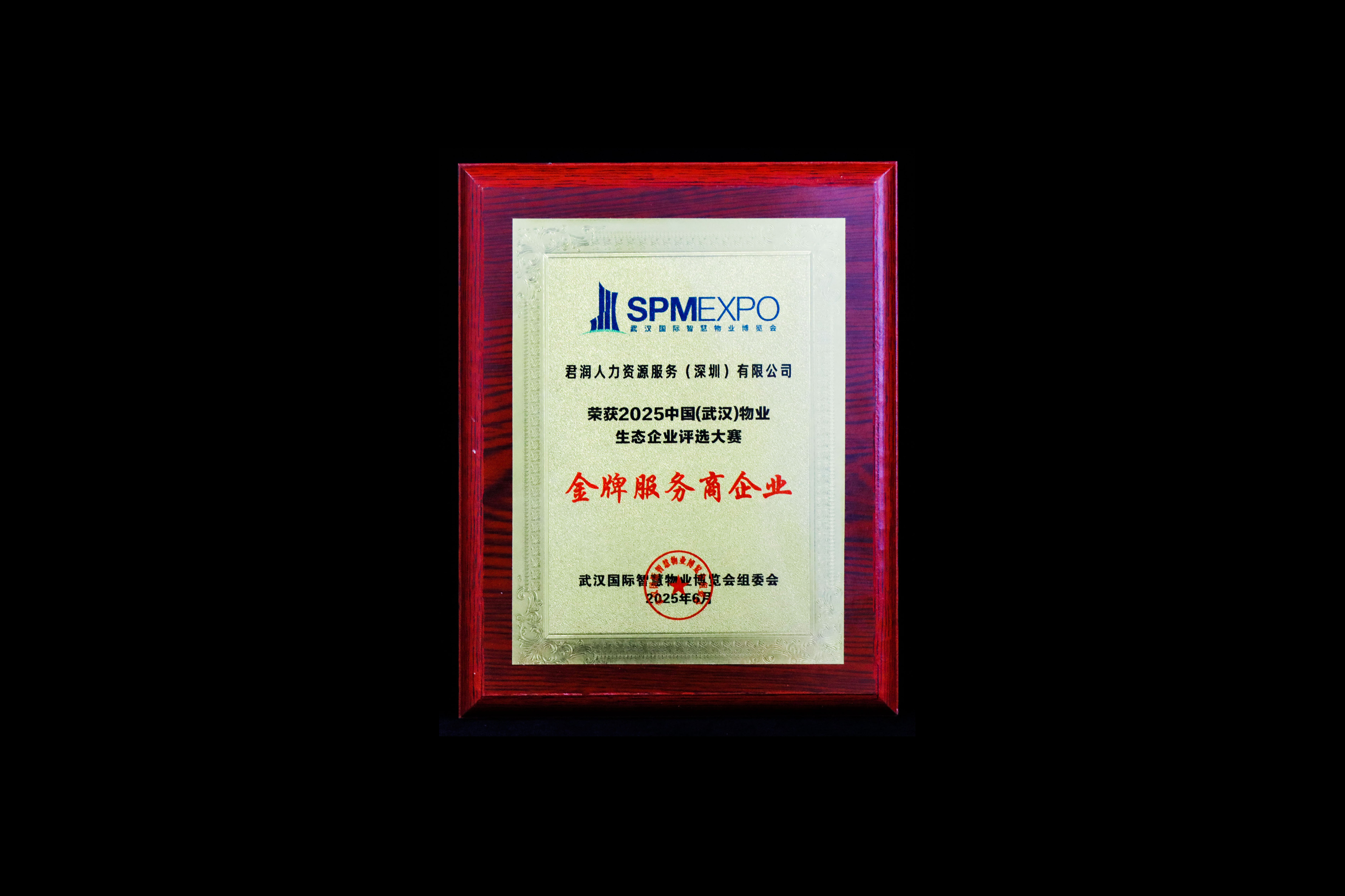 2025 年 5 月,君润人力荣获武汉国际智慧物业博览会组委会金牌服务商